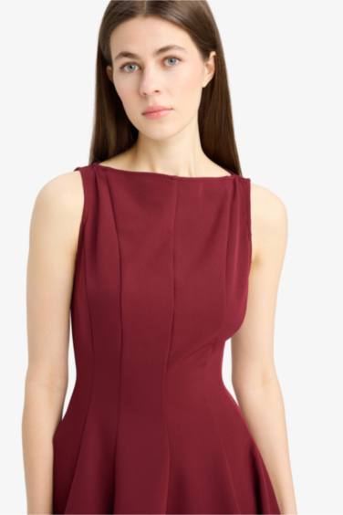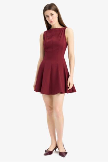 Kayık Yaka Basic Düz Kolsuz Mini Abiye Elbise