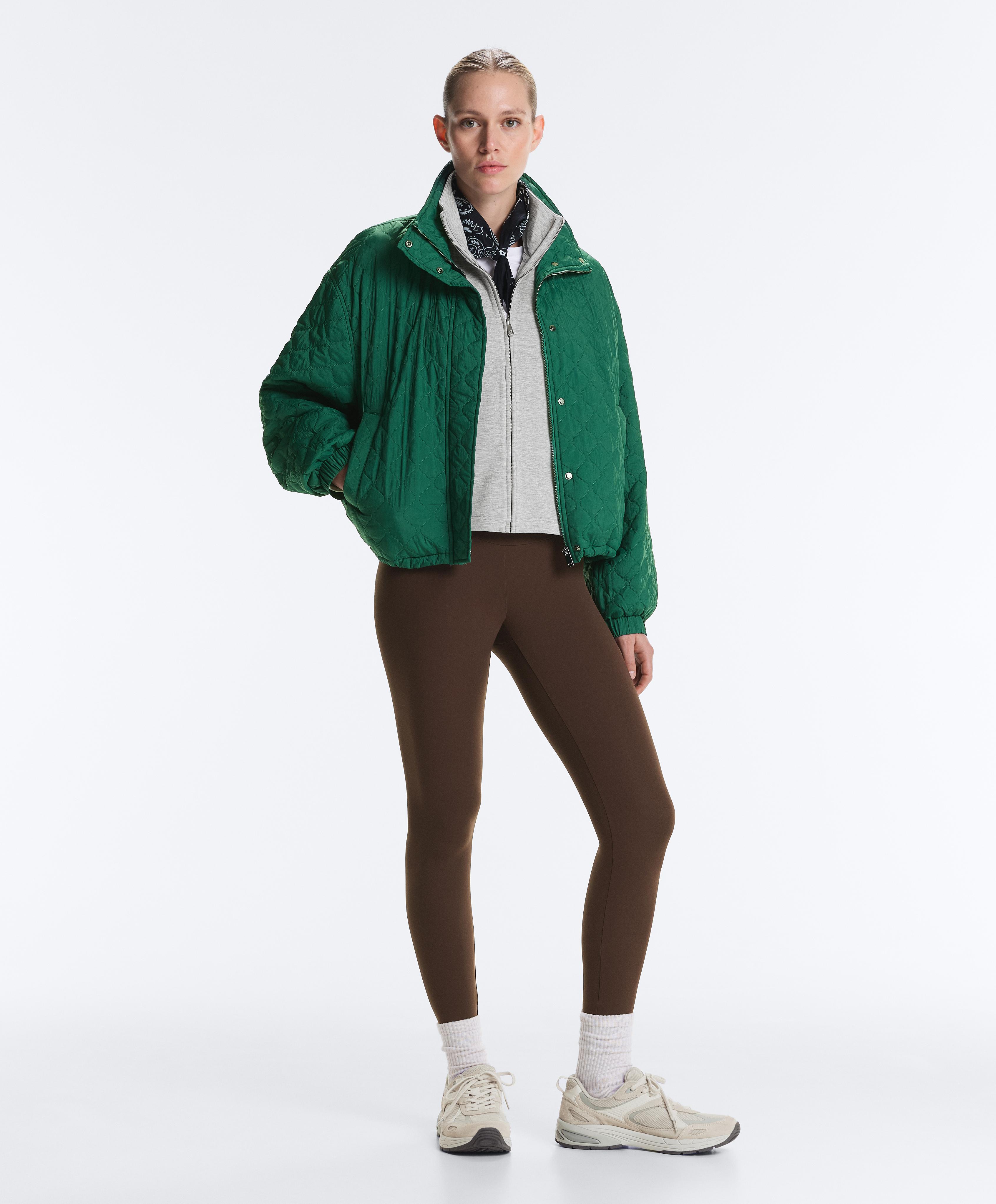 Fermuarlı ön kapamalı ve dik yakalı ceket. Melanj pike kumaş.