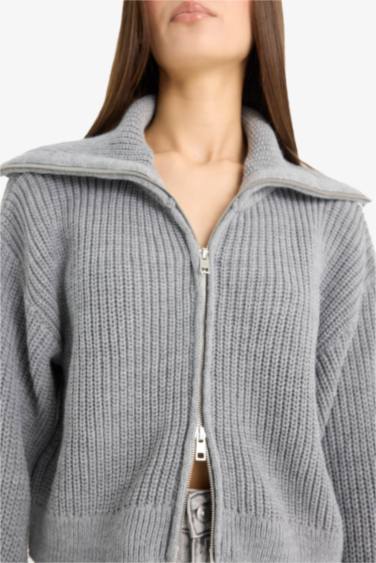 Slim Fit Dar Kesim Polo Yaka Fermuarlı Triko Hırka