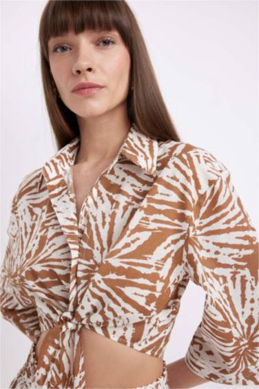 Crop Desenli Vual Yarım Kollu Bluz