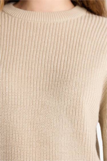 Regular Fit Bisiklet Yaka Selanik Kumaş Basic Düz Triko Kazak