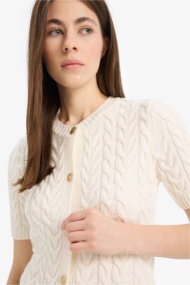 Regular Fit Bisiklet Yaka Triko Kısa Kollu Hırka