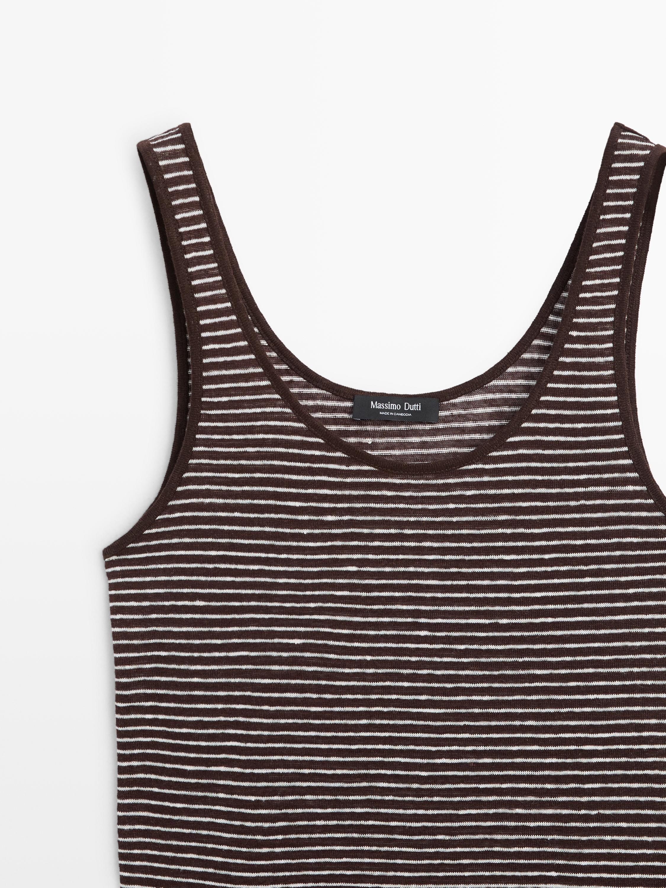 Çizgili keten askılı tişört