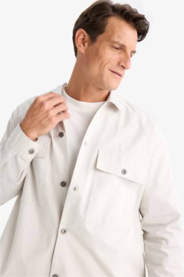 %100 Pamuk Oversize Geniş Kalıp Polo Yaka Çapraz Dokuma Gömlek Ceket