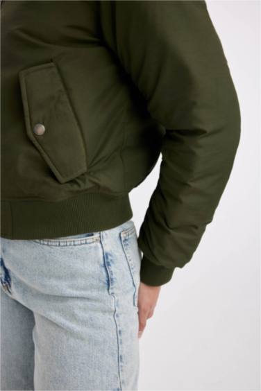 Su Geçirmez Kolej Yaka Düz Fermuarlı Cepli Bomber Ceket Mont