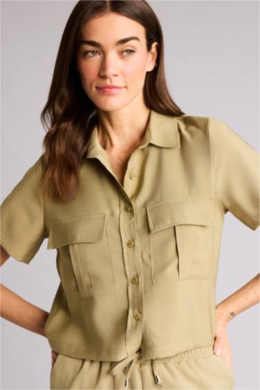Cropped Fıt Gömlek Yaka Tencel Kısa Kollu Gömlek
