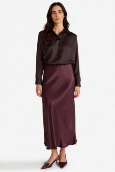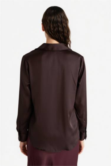 Oversize Geniş Kalıp Saten Uzun Kollu Gömlek