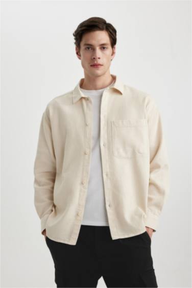 Oversize Geniş Kalıp Polo Yaka Waffle Uzun Kollu Gömlek