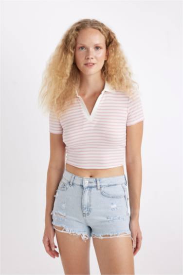 -%30Yüksek Bel Kesik Uçlu Paça Jean Şort