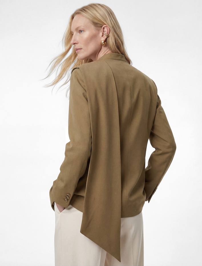 Olive renkli bu blazer, temiz ve sade bir estetikle dikkat çeken bir klasik. Uzun kollu ve cepli yapısıyla hem pratik hem de dengeli bir görünüm sunuyor. Düğmeli şal yaka detayı, giyimde hafif bir ritim oluşturarak her tür kombine edilebilirlik sağlıyor. Uzun gövdeli tipler için ideal çünkü vücut hatlarını düzeltici bir etki yaratıyor. Kısa boy veya dar omuzlu bireyler içinse omuzların daha geniş görünümesini sağlayarak denge kuruyor. Sonbahar ve kış aylarında ofis, alışveriş ya da gün sonu buluşmalarda mükemmel bir seçim. Beyaz tisörtle ve yüksek bel jeans ile kombinleme, günlük yaşamda rahat ama zarif bir hava yaratır. Aynı zamanda siyah pantolon ve deri ayakkabı ile daha ciddi bir look da oluşturabilirsin. Olive rengi, notr tonlarla çok iyi uyuyor; siyah deri kemer ve beyaz sneaker ile tamamlayarak modern bir dokunuş katabilirsin. Kuru temizleme önerilir; katlanmadan asılı tutulması, kumaşın kalitesini korur. İç katman olarak da kullanılabilir, sıcak havalarda hafif bir eklenti olarak işe yarar.