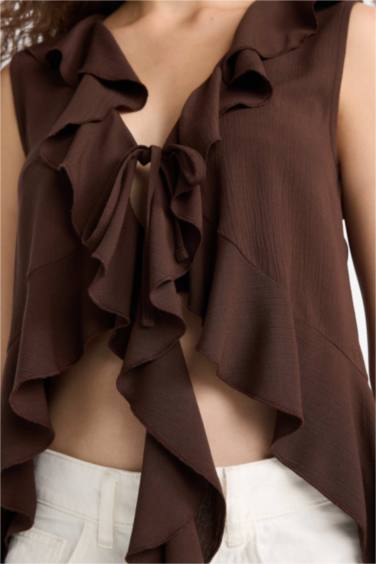 Regular Fıt Dokulu Kolsuz Bluz