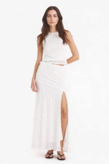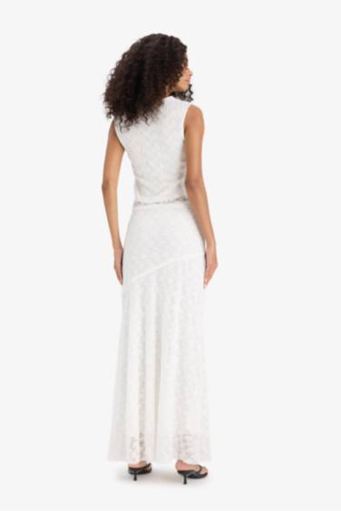 A Kesim Normal Bel Yırtmaçlı Dantel Midi Etek