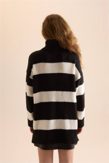 Relax Fit Balıkçı Yaka Çizgili Triko Kazak Tunik