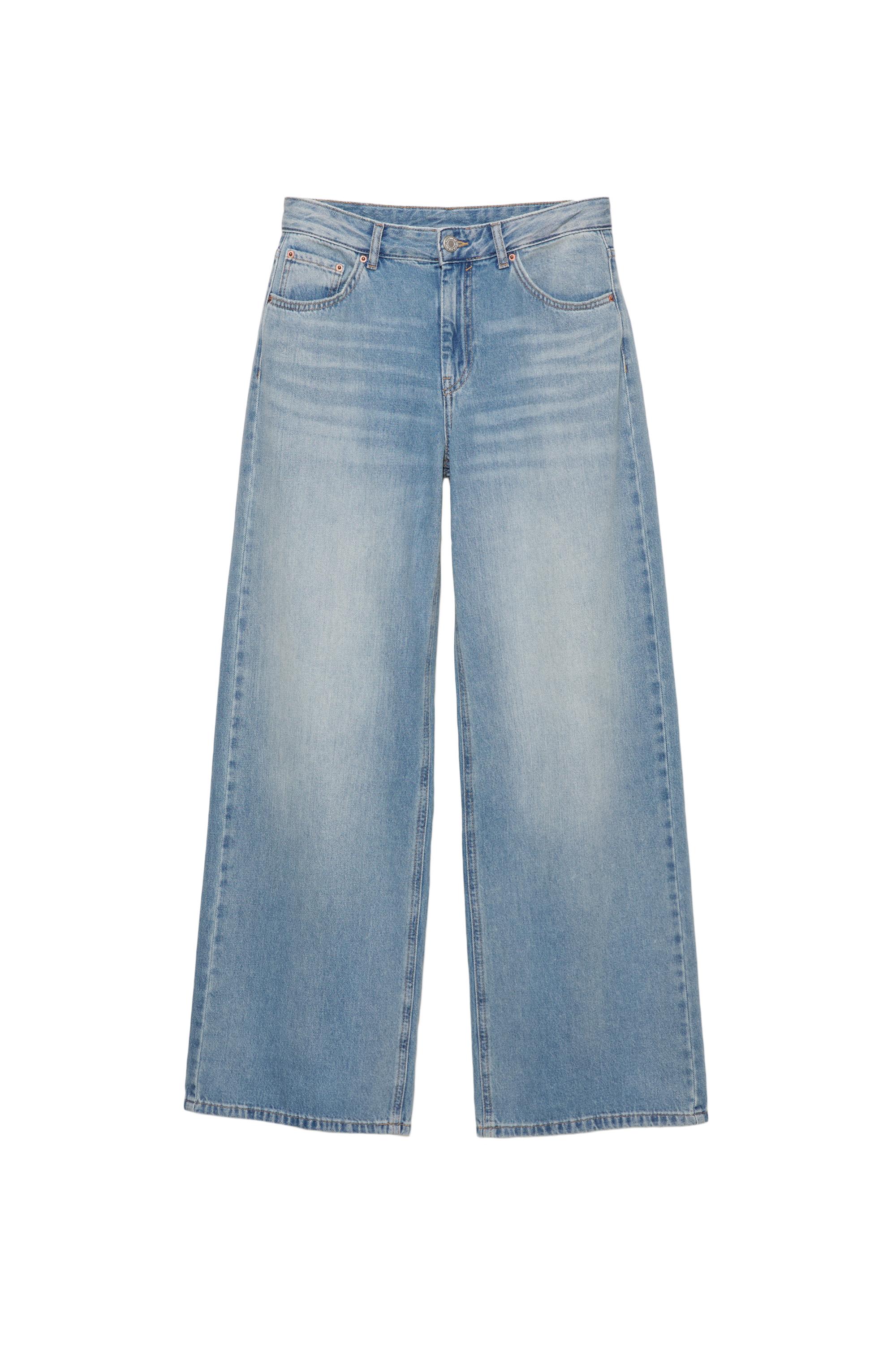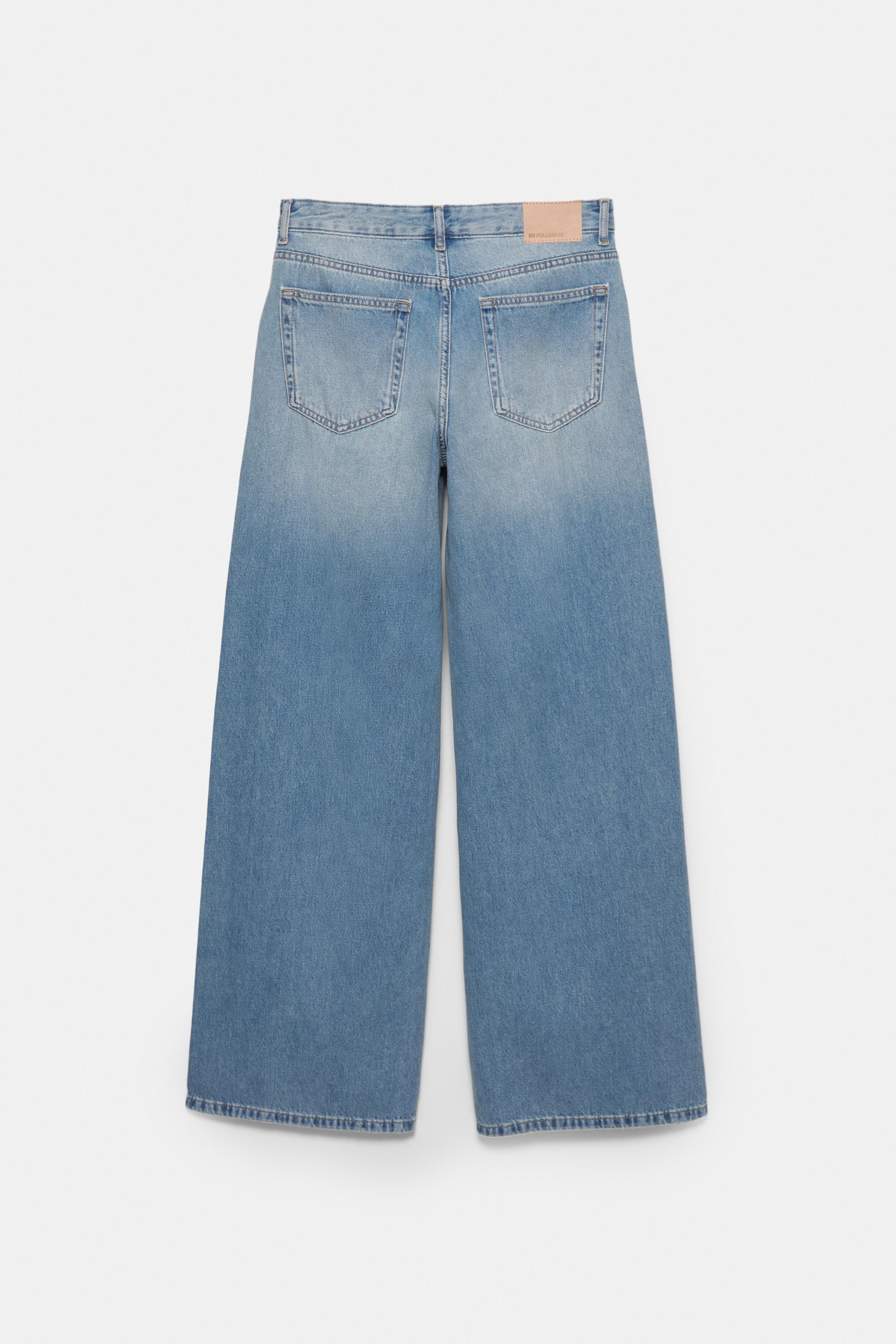Düşük bel, kemer tokalı, fermuarlı ve düğmeli, cepli oversize baggy jean.