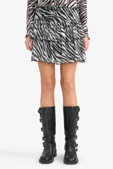 Zebra Desenli Normal Bel Tül Mini Etek