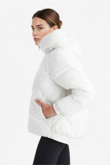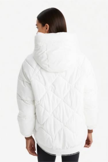 Su İtici Oversize Fit Geniş Kalıp Kapüşonlu Fermuarlı Cepli Şişme Mont