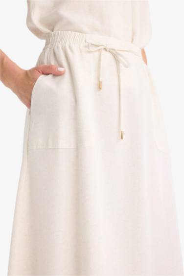 Regular Fit Kargo Cepli Keten Karışımlı Midi Etek