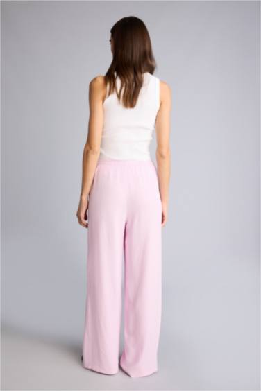 Wıde Leg Yüksek Bel Keten Karışımlı Pantolon