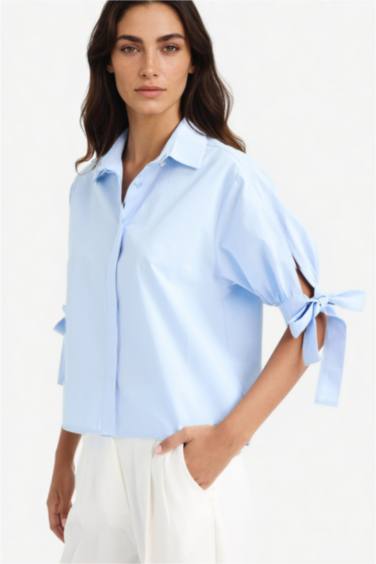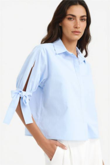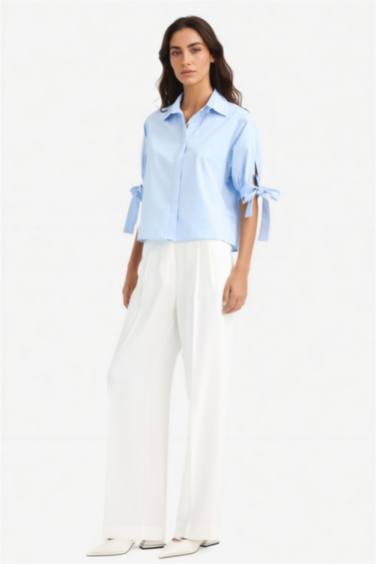 %100 Pamuk Regular Fıt Bağlama Detaylı Poplin Gömlek