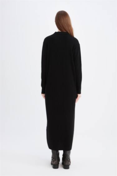 Regular Fit Polo Yaka Basic Düz Maxi Triko Elbise