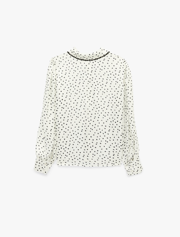 Uzun Kollu Bağlamalı Yaka Puantiyeli Saten Gömlek
