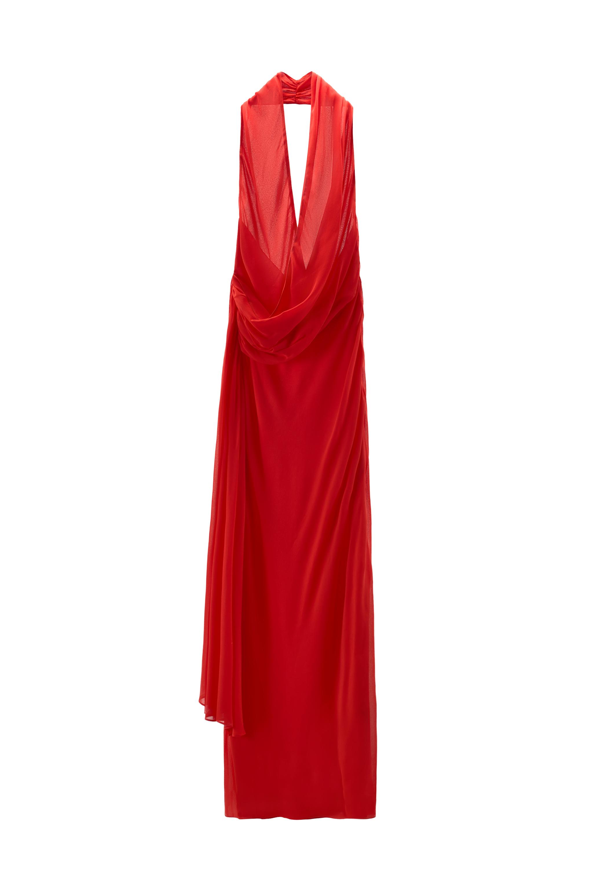 100% VISCOSE HALTER NECK FLOWING DRESS