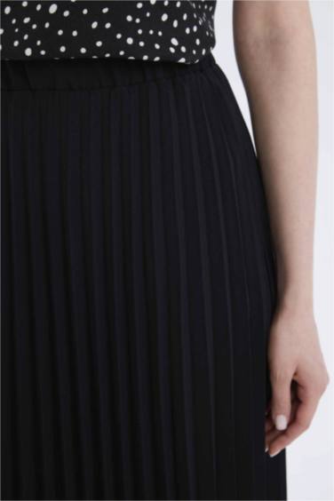 Beli Lastikli Basic Düz Pilise Aerobin Midi Etek
