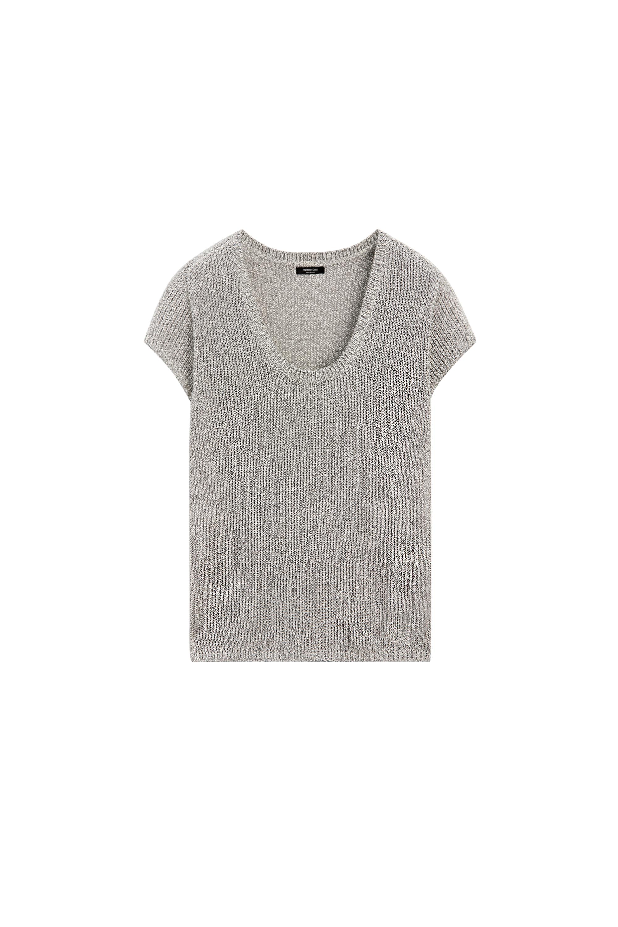 İplik detaylı kısa kollu triko kazak