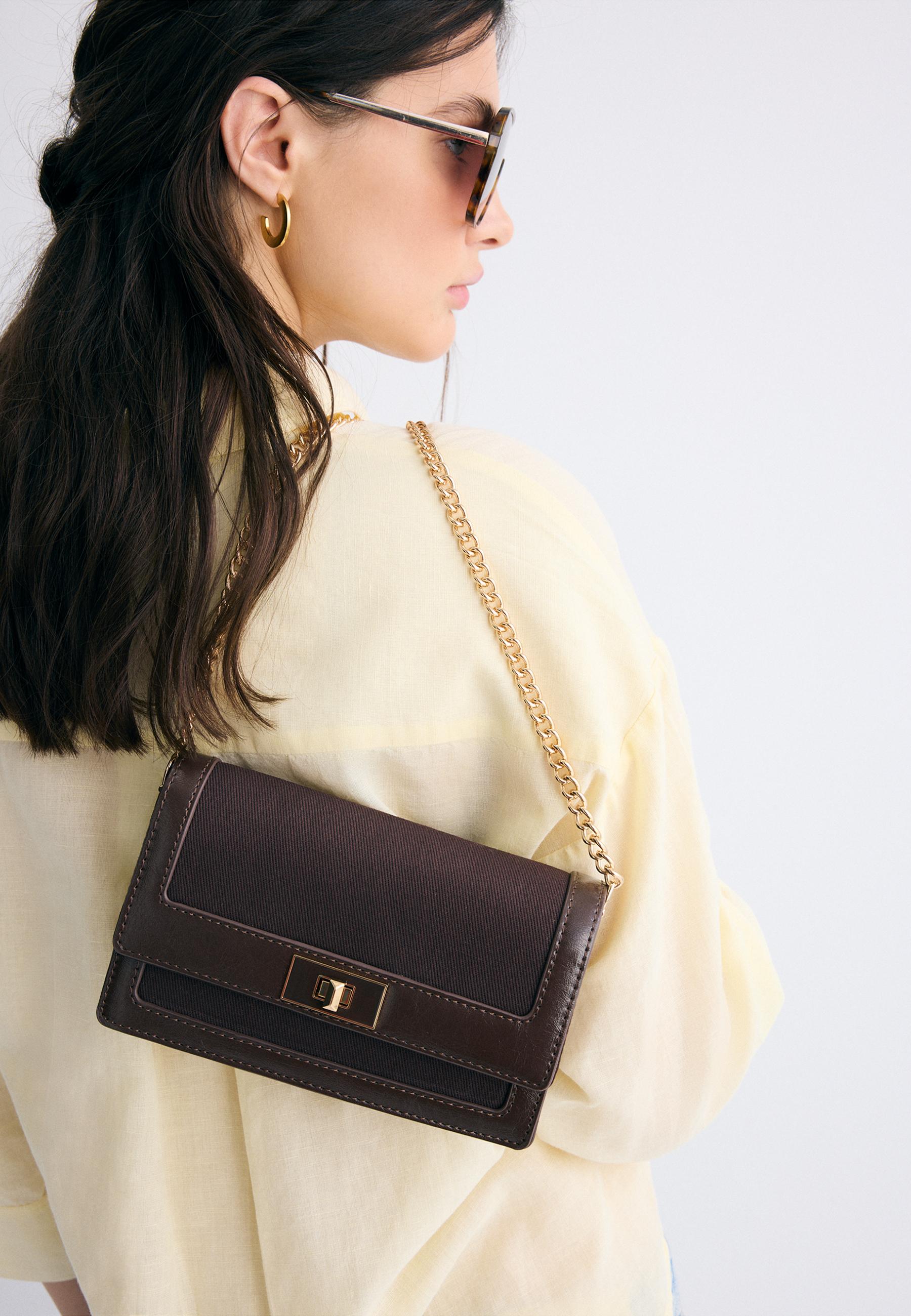 Bu çanta, temiz ve sade bir stilin güçlü simgesi. Kanvasın doğal dokusuyla altın rengi detayların oluşturduğu kontrast, her bakışta dikkat çekiyor. Uzun gövdeli tipler için ideal çünkü vücut hatlarını dengeliyor ve daha uzun görünüm sağlıyor. Beyaz tisörtle ve yüksek bel jeans ile kombinleme, gün içinde rahat ama zarif bir hava yaratır. Aynı zamanda, açık kollu bluz ve siyah pantolonla ofis-sonrası buluşmalarda da oldukça uygun. Altın rengi aksesuarlarla renk bütünlüğü koruyarak, siyah deri kemer ve beyaz sneaker ile tamamlayabilirsin. Çantayı katlanmadan asmalı, iç katman olarak da kullanabilirsin. Yüzeyi kolay temizlenebilir olduğu için günlük kullanımı için çok pratik.