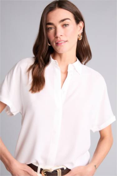 Beyaz bir gömlek, sadece temiz ve dengeli bir tarzın temel taşıdır. Defacto'nun bu regular fit kısa kollu gömleği, minimalist anlayışa sadık kalarak her gün kullanıma uygun, ancak dikkat çekici bir etki yaratır. Uzun gövdeli tipler için idealdir; omuz hizasında kesimle vücut hatlarını dengeler. Yaz mevsiminde ofis-sonrasi bulusmalarda ya da bahar aksam yürüyüşlerinde şıklığınızı korurken, sonbaharda da kalın bir blazerin altına veya hafif bir kot ceketin içine giyilebilir. Beyaz tisortla ve yüksek bel jeans ile kombinleme, rahat ama zarif bir görünüm sağlar; aynı zamanda siyah deri kemer ve beyaz sneaker ile tamamlayarak daha modern bir look elde edebilirsiniz. Bakım açısından katlanmadan asmalı, iç katman olarak da kullanılabilir. Sadece bir parça, ama birçok farklı durumda işe yarar.