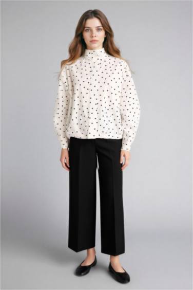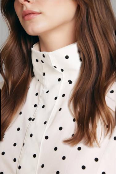 %100 Pamuk Regular Fıt Puantiye Poplin Uzun Kollu Tunik