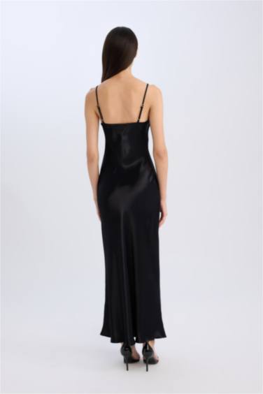 Slim Fit Dar Kesim Viskon Askılı Maxi Siyah Abiye Elbise