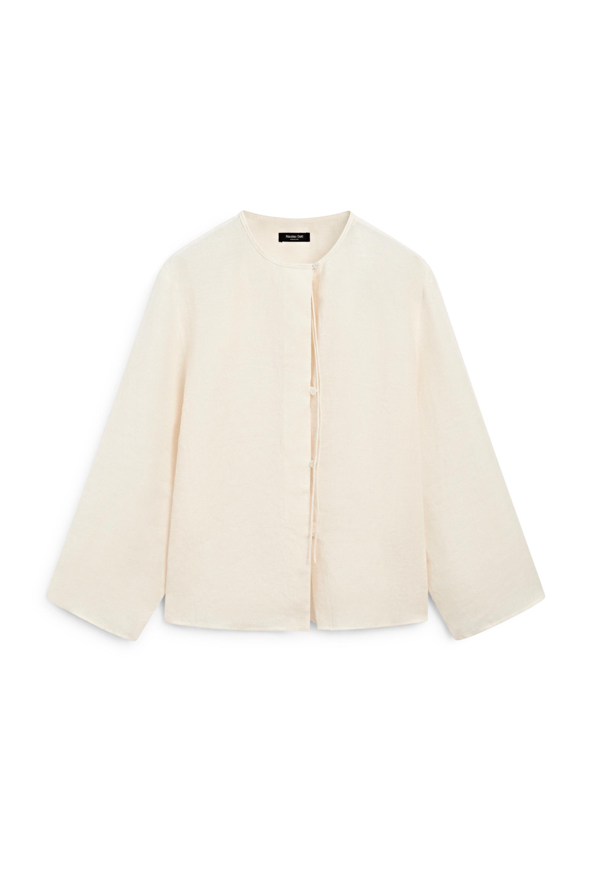 Dekolteli %100 keten gömlek