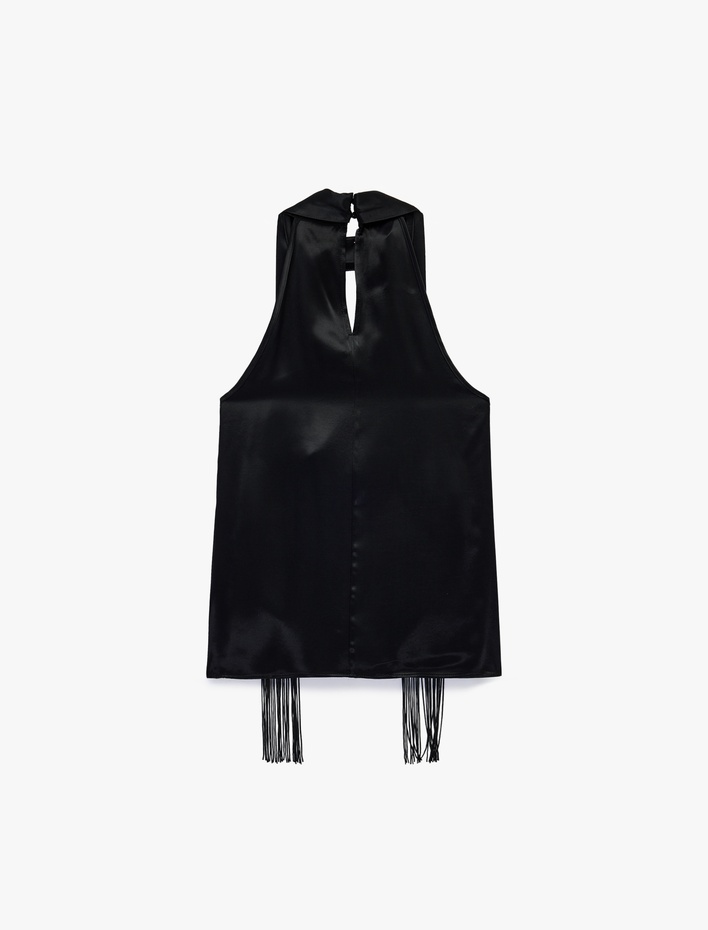 Saten Halter Yaka Kolsuz Bluz