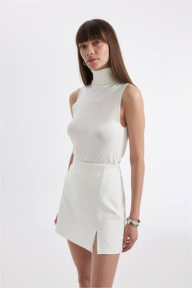 Regular Fit Balıkçı Yaka Kolsuz Basic Düz Triko Kazak