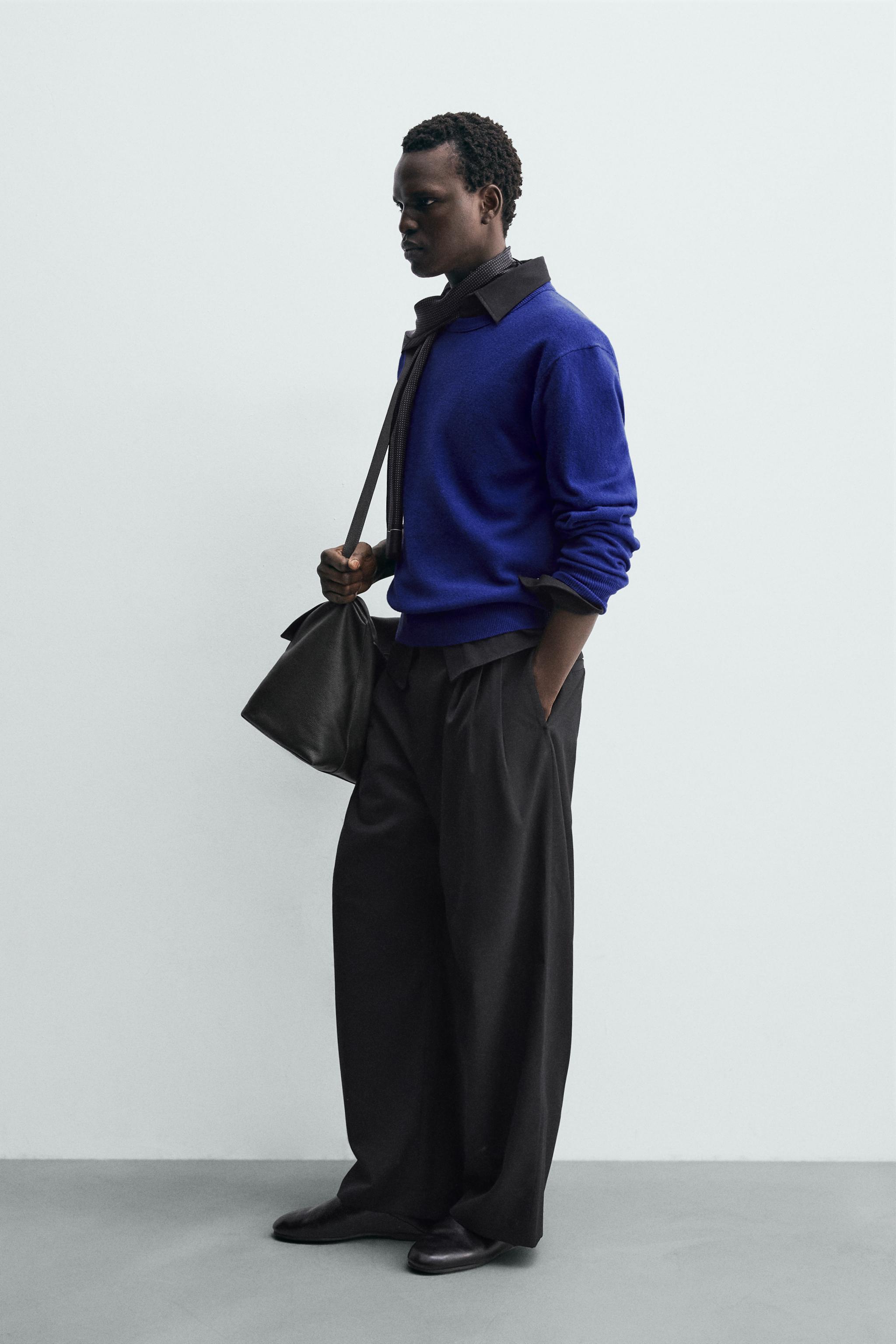 PLEATED WOOL BLEND TROUSERS