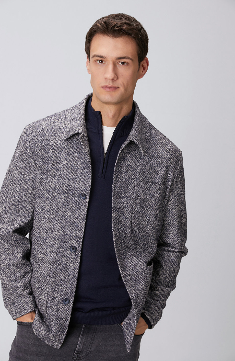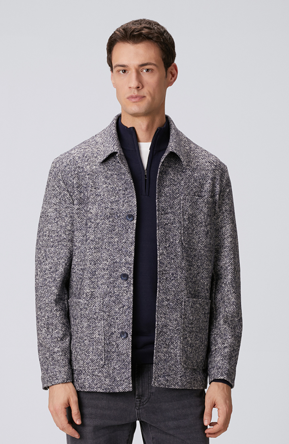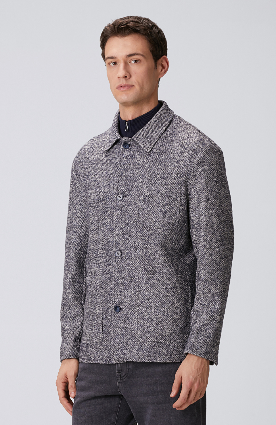 Lacivert Yün Karışımlı Örme Ceket