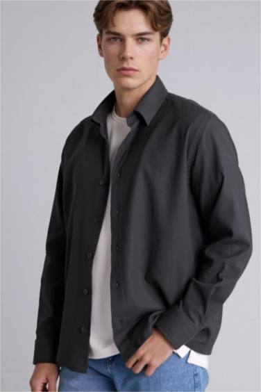 Boxy Fıt Gömlek Yaka Dokuma Uzun Kollu Gömlek