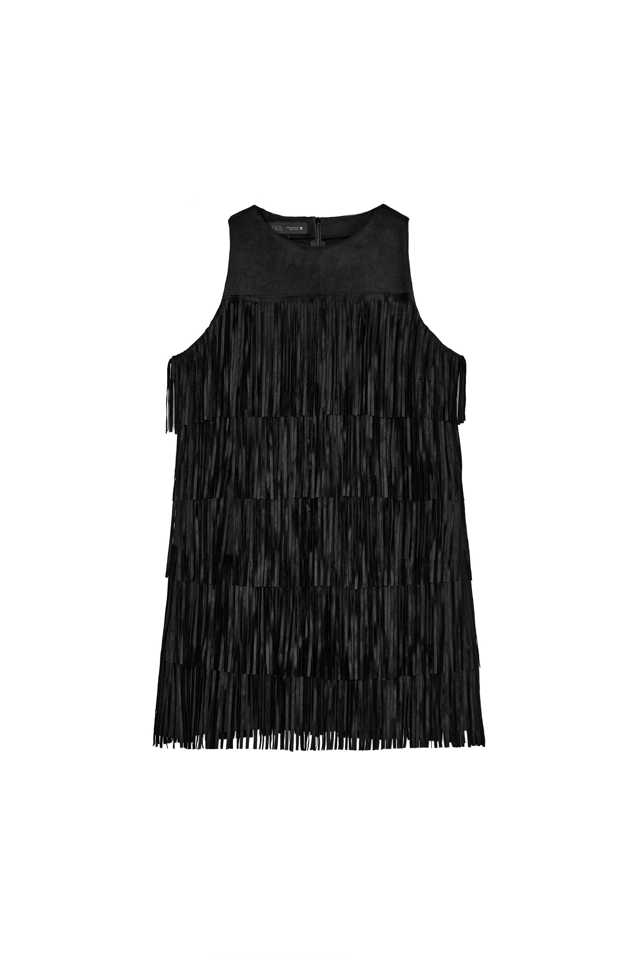 ZIMBALI PÜSKÜLLÜ SUNİ SÜET ELBİSE