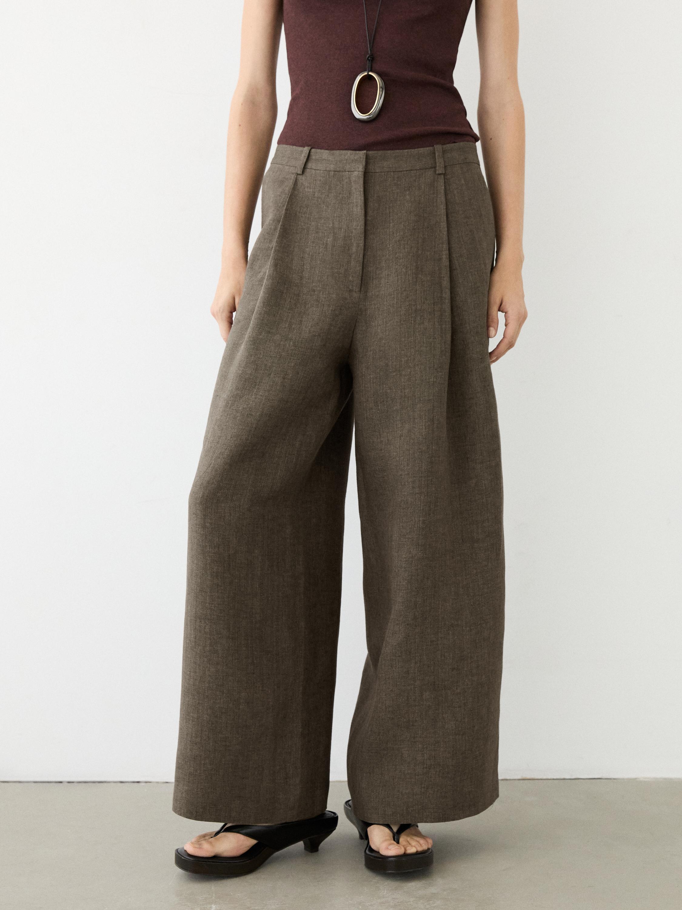 Bu melanj keten pantolon, temiz ve dengeli bir kıyafet koleksiyonu için vazgeçilmez bir parca. Daha az parca ile daha fazla etki yaratma felsefesini benimseyenler için idealdir. Yumuşak dokusu ve hafif sarkma yapısıyla her hareketi rahatlatan bir konfor sunar. Olive ve kahverengi renkleri, hem doğal hem de zengin bir atmosfer yaratır. Uzun gövdeli tipler için idealdir; vücut hatlarını netleştirmeye yardımcı olur. Ayrıca genis omuzlari olanlar için de dengeleyici bir etki yaratır. Beyaz tisortle ve yuksek bel jean ile kombinleme, günlük bir casual look oluşturur. Sıcak bir sonbahar aksamında ise siyah bir bluz ve uzun kabanla tamamlayabilirsin. Kemerli bir kazağa ve botla da ofis-sonrasi bulusmalarda şıkça giyilebilir. Siyah deri kemer ve beyaz sneaker ile tamamlayarak modern bir dokunuş ekleyebilirsin. Katlanmadan asmali, nemli hava ve güneş ışığından korunmak için iç katman olarak da kullanılabilir.