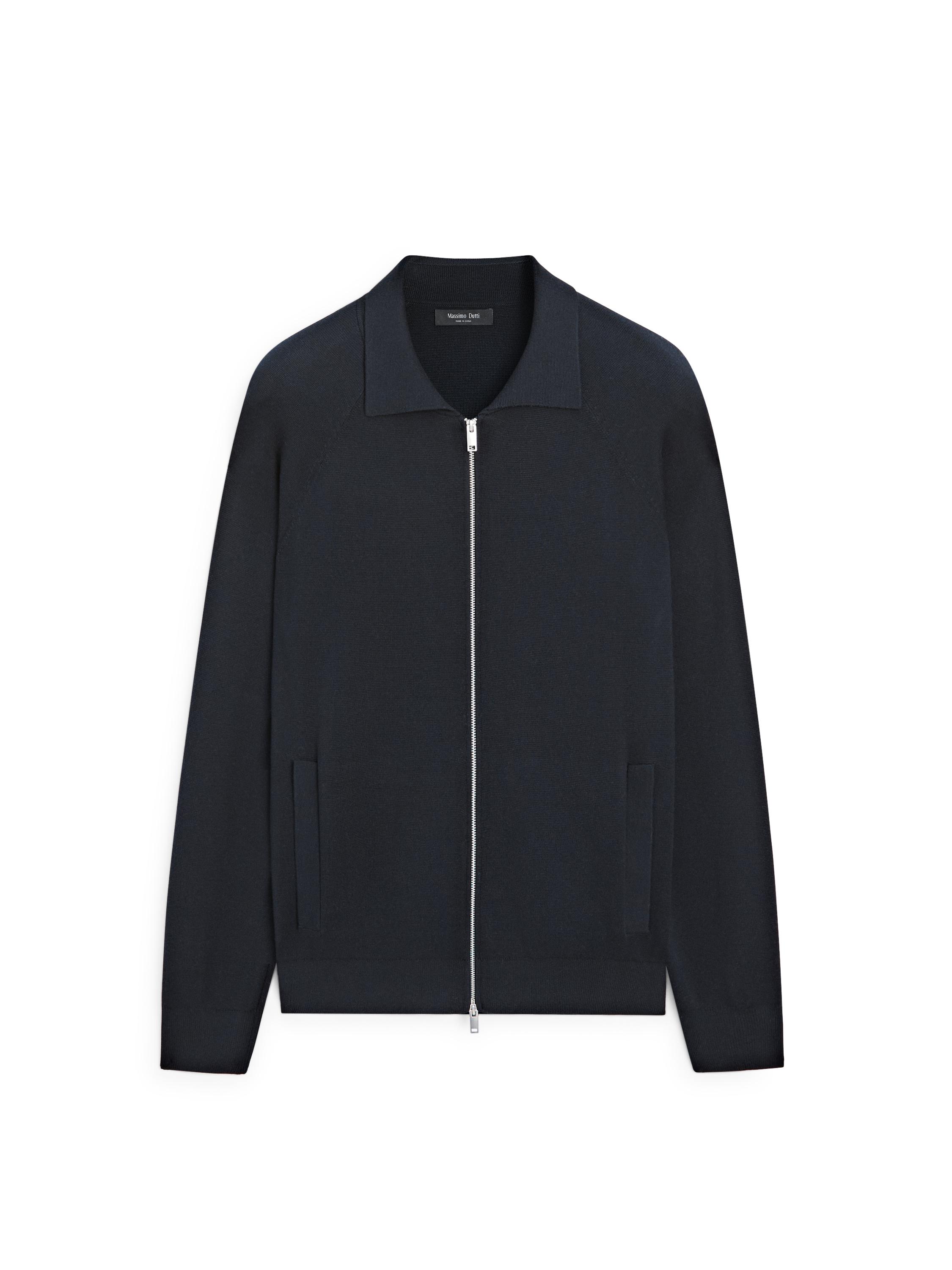 Fermuarlı pamuk karışımlı triko hırka