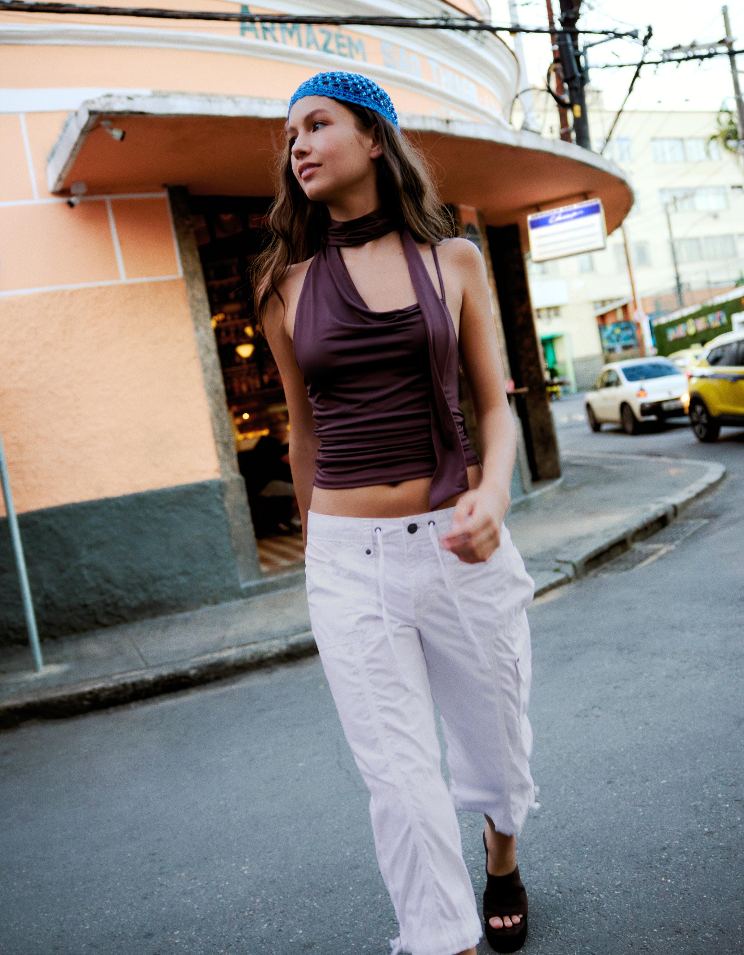 Bershka'nın cepli kapri pantolonu, günlük hayatın sakin ve rahat ritmine uygun bir parca. Uzun govdeli tipler icin ideal olan bu model, hafif koltuklu kalibiyle bacaklari dogru pozisyona getirir ve hareket kabiliyetini korur. Beyaz tisortle ve yuksek bel jean ile kombinleme yaparsan hem gundelik hem de yurt ici tatil anlamlarina gelir. Burgundy rengi ise daha ılık mevsimlerde, bol canta ve kisa bluzla kullanildiginda bohemian bir havaya sahip olursun. Siyah deri kemer ve beyaz sneaker ile tamamlayarak daha streetwear tarzına yaklaşabilirsin. Katlanmadan asmali, nemli ortamlardan uzak tutmali ve iç katman olarak da kullanılabilir. Her gün giyebilecegin bu pantolon, her durumda kendini iyi hissettirir.