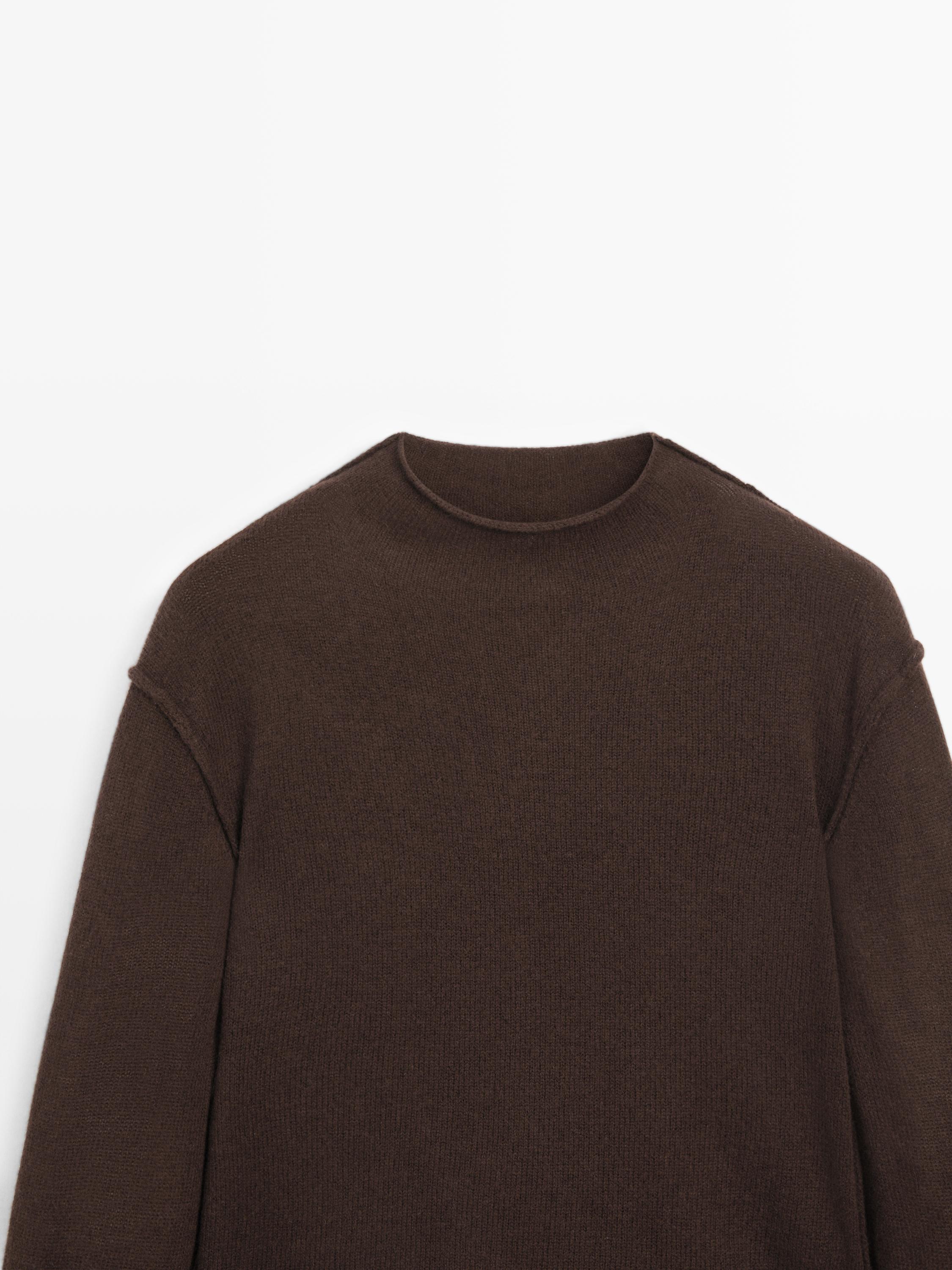 Dik yaka yün karışımlı triko kazak