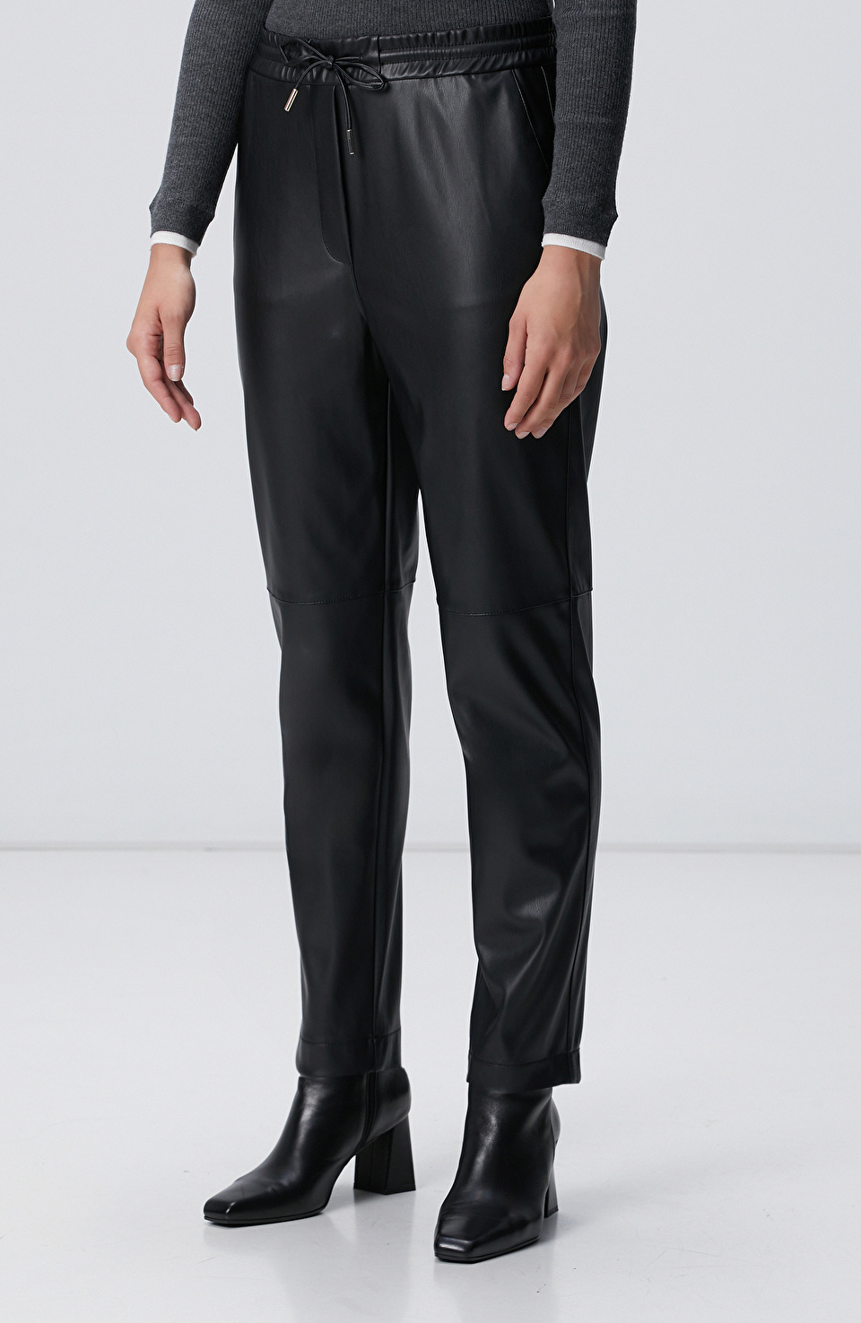 Siyah vegan deri pantolon, temiz hatlar ve minimal detaylarıyla her gün kullanılabilecek bir temel parçadır. Uzun govdeli tipler için idealdir; kalça ve bacak hattını dengeli şekilde vurgular. Klasik bir beyaz tisortla ve yuksek bel jeans ile kombinleme yaparak günlük bir konforlu look elde edebilirsin. Aynı zamanda, ince bir krem renk bluz ve açık bordo bir çanta ile ofis-sonrasi bir bulusmada da etkili olabilir. Siyah deri kemer ve beyaz sneaker ile tamamlayarak modern bir akademik his verir. Pantolonu katlanmadan asmalı, iç katman olarak da kullanılabilir. Zaman kazanmak istersen, siyah bir mont veya ceketle birlikte giyerek hemen daha şık bir görünüm elde edebilirsin.