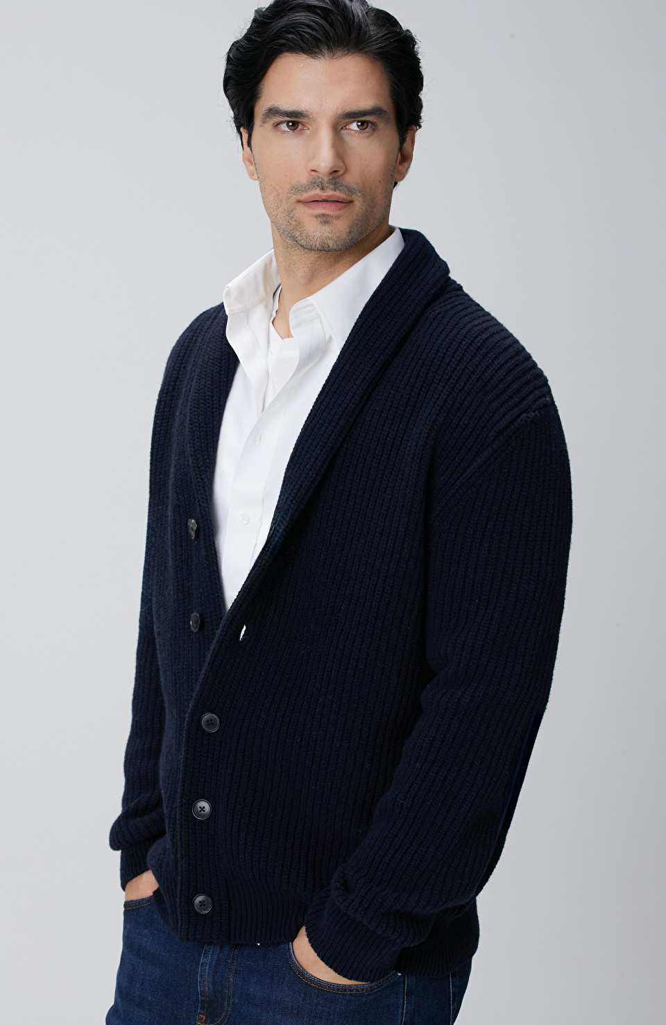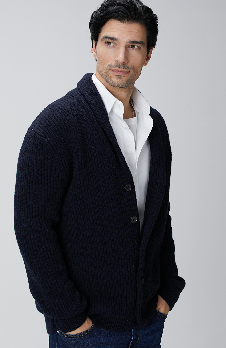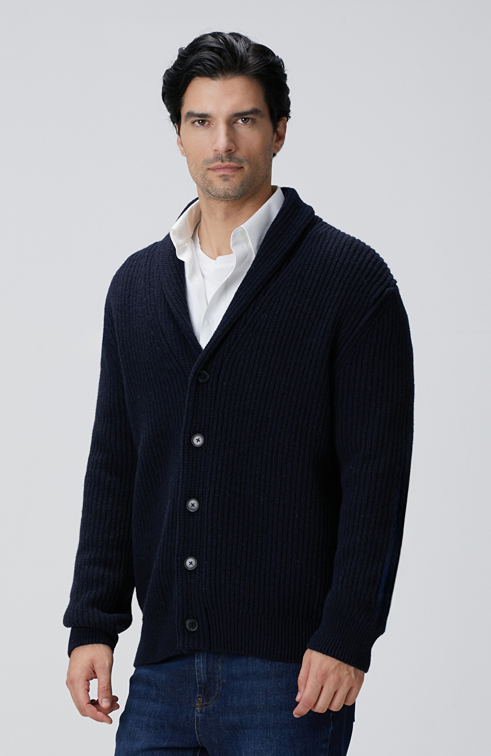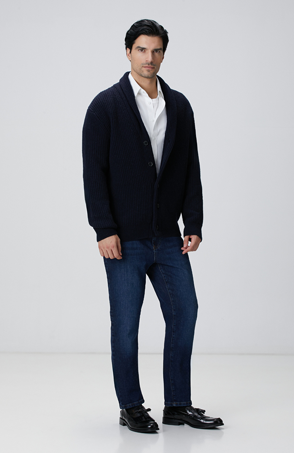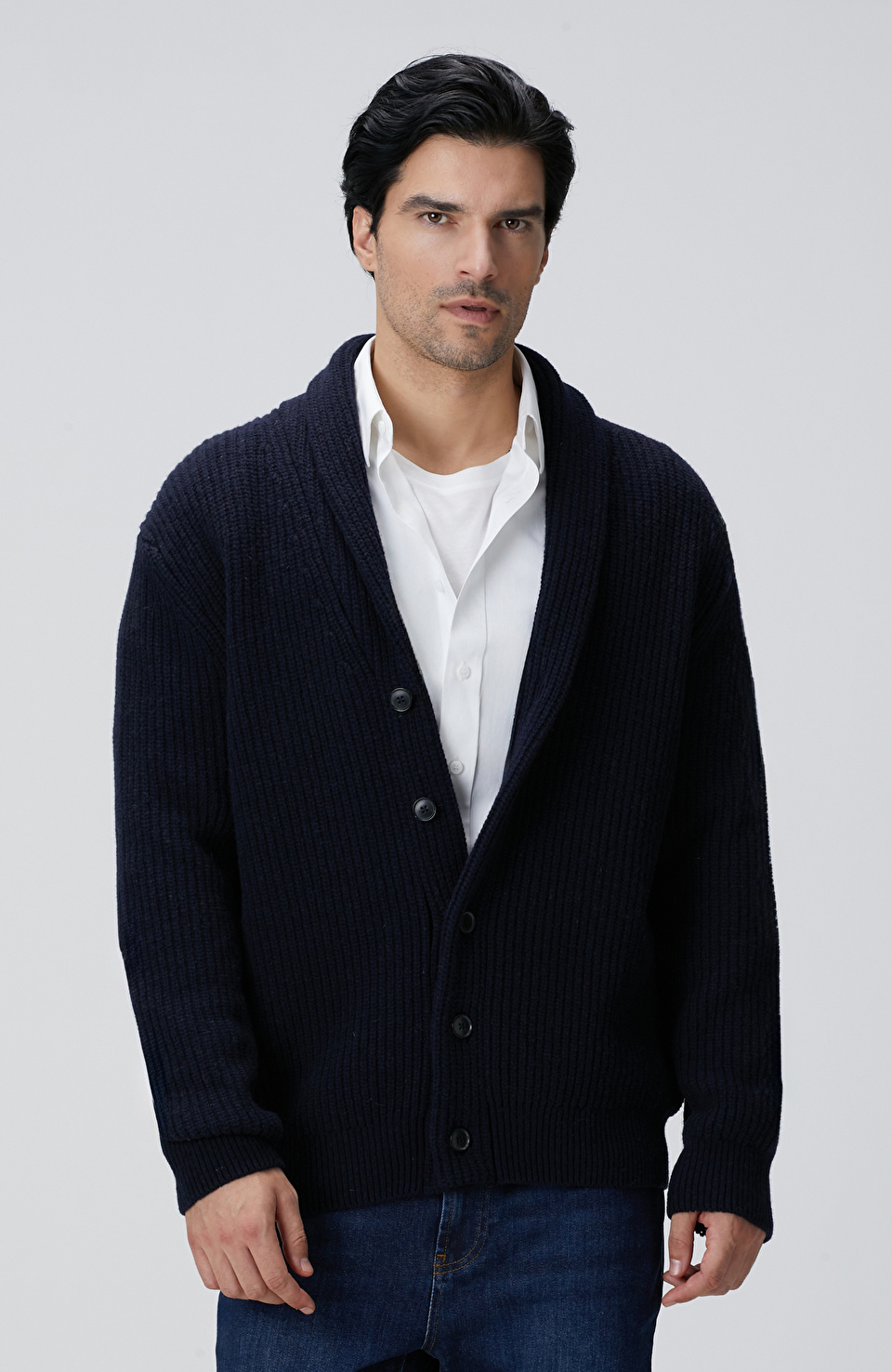 Lacivert Selanik Örgülü Triko Hırka