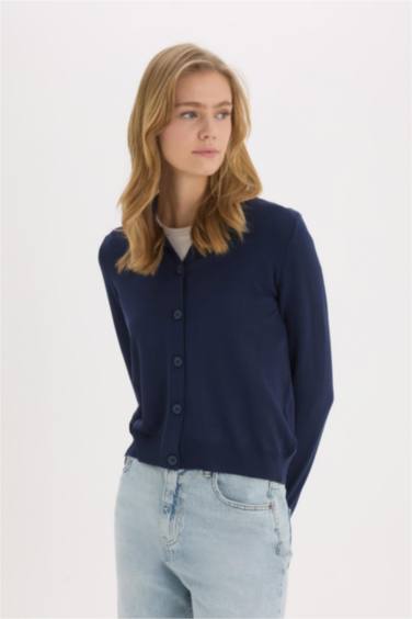 Regular Fit Polo Yaka Basic Düz Triko Hırka