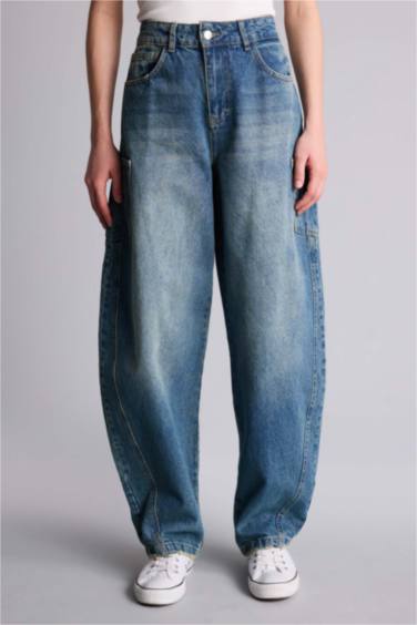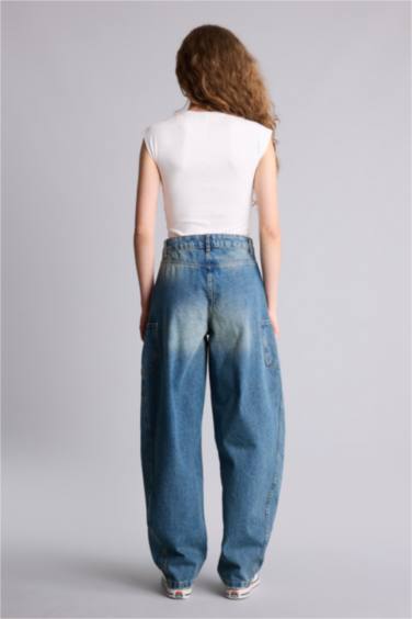 %100 Pamuk Barrel Fıt Geniş Paça Jean Pantolon