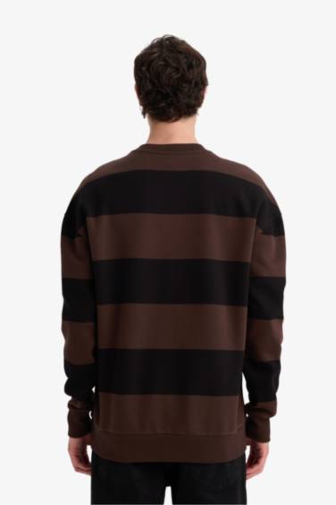 Boxy Fıt Bisiklet Yaka Çizgili Sweatshirt