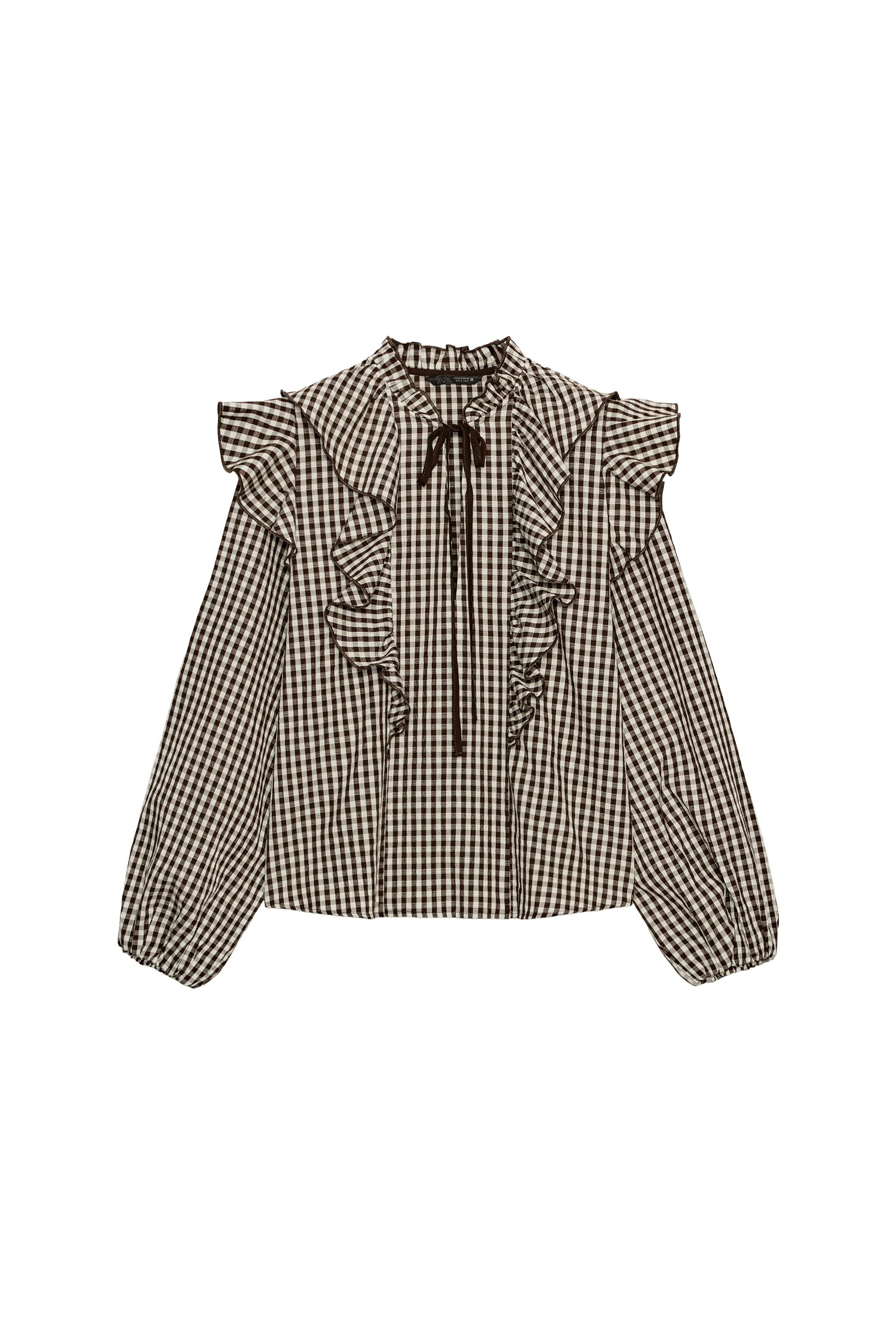 BLOUSE WITH RUFFLES, CHECKS AND BOW