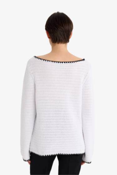 Regular Fıt Kayık Yaka Ajurlu Triko Kazak